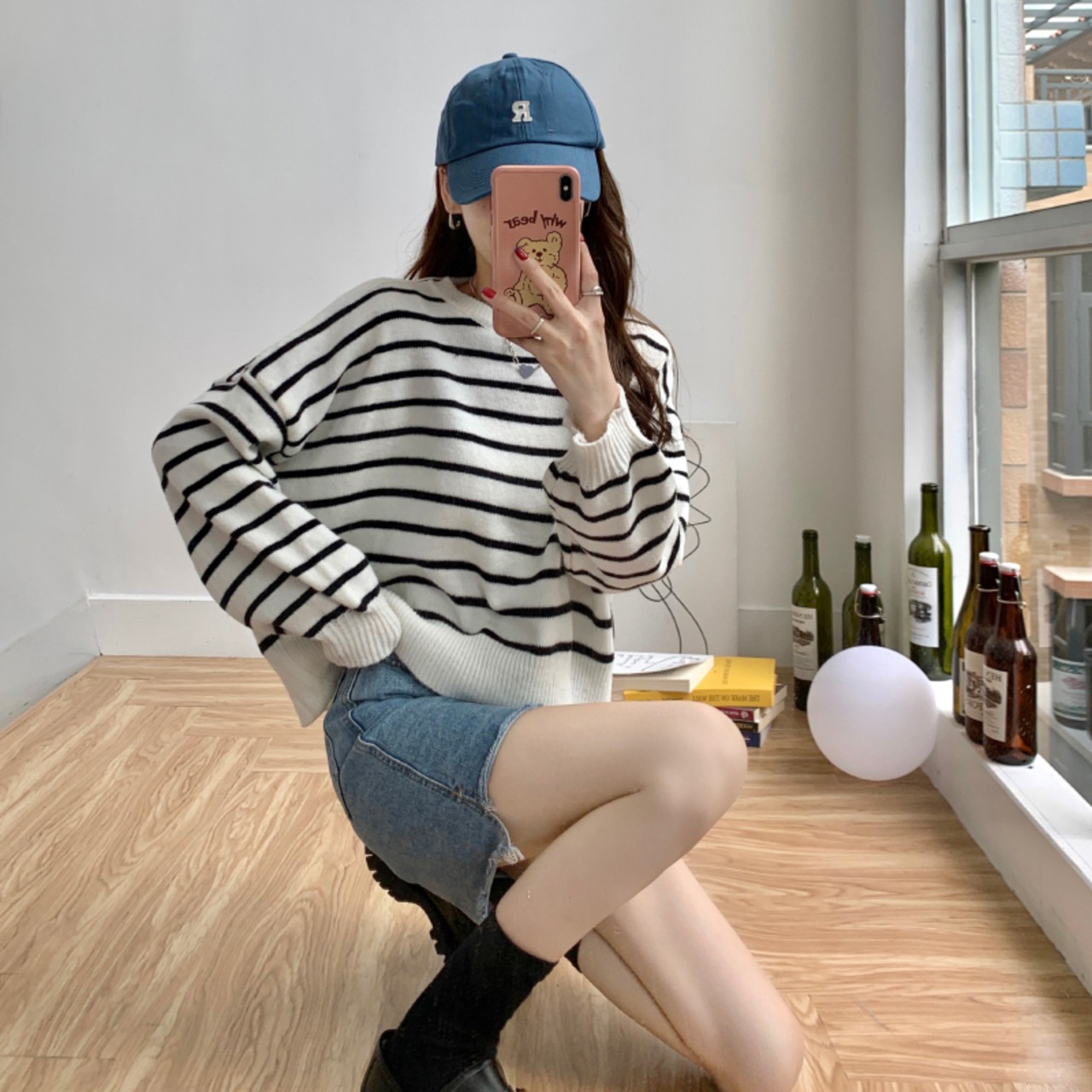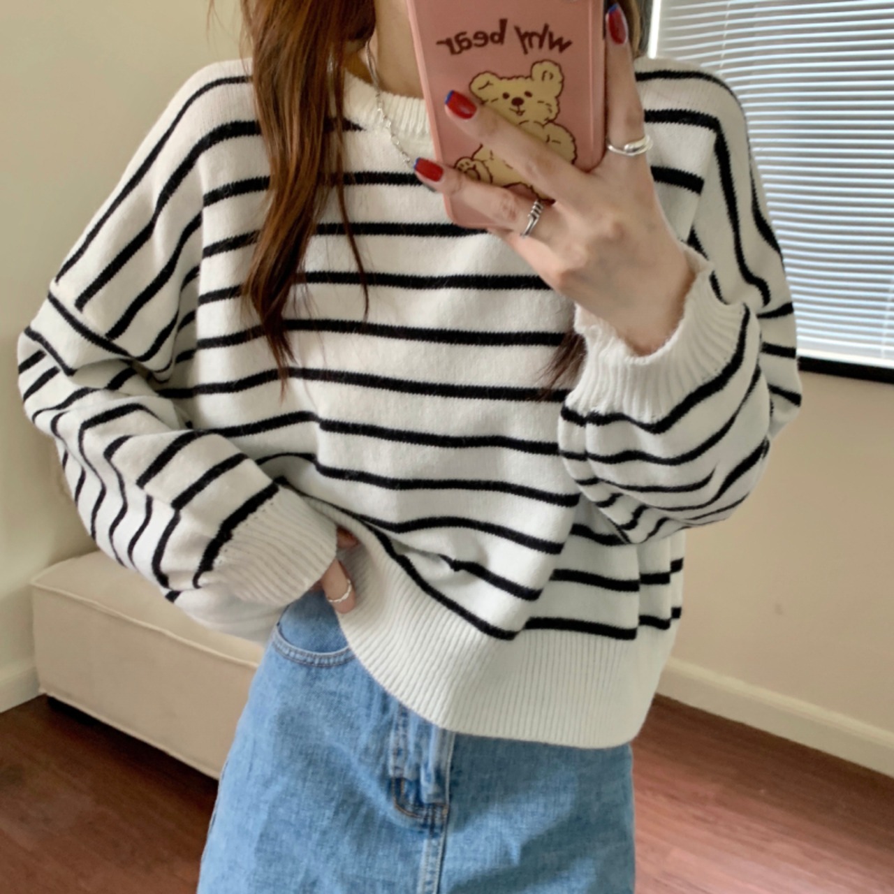 トップス レディース ニット セーター 長袖 ボーダー ボタン 秋 ラウンドネック おしゃれ カジュアル ゆったり MH4188