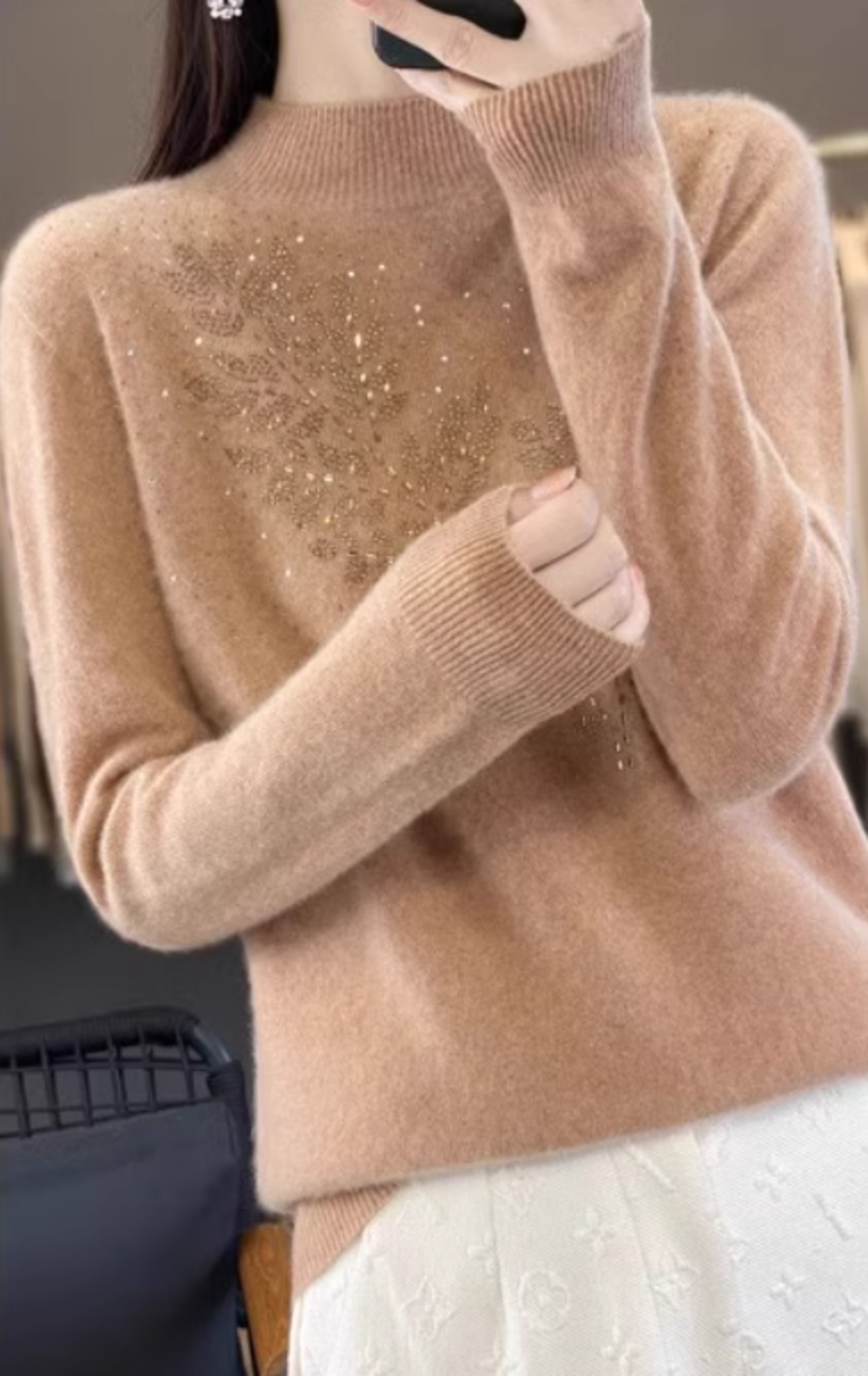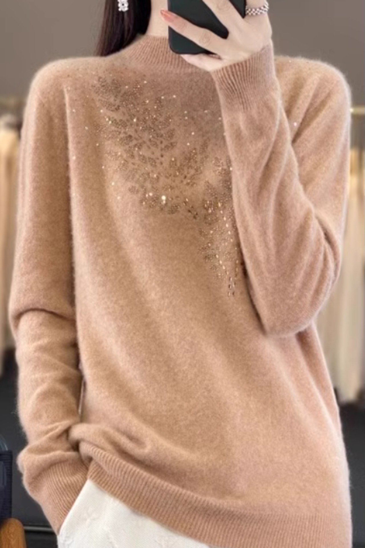 セーター ニット トップス プルオーバー 秋冬 レディース 長袖 リーフ ボタニカル ハイネック ガーリー カジュアル オフィス ブラウン ab3190