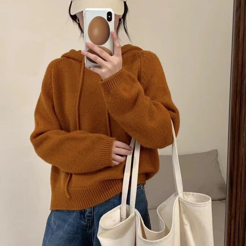 ニット トップス レディース 長袖 フード付き パーカー 秋 冬 韓国 シンプル カジュアル デート お出かけ MH4204