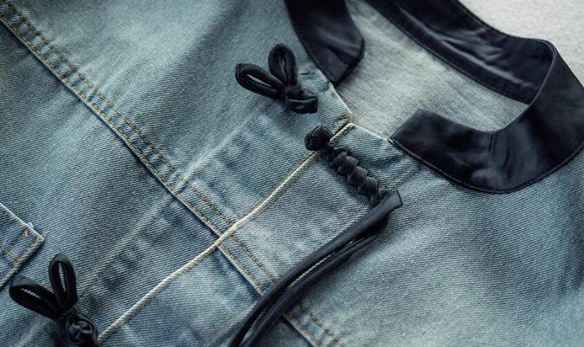 チャイナ風デザインのデニムジャケット。