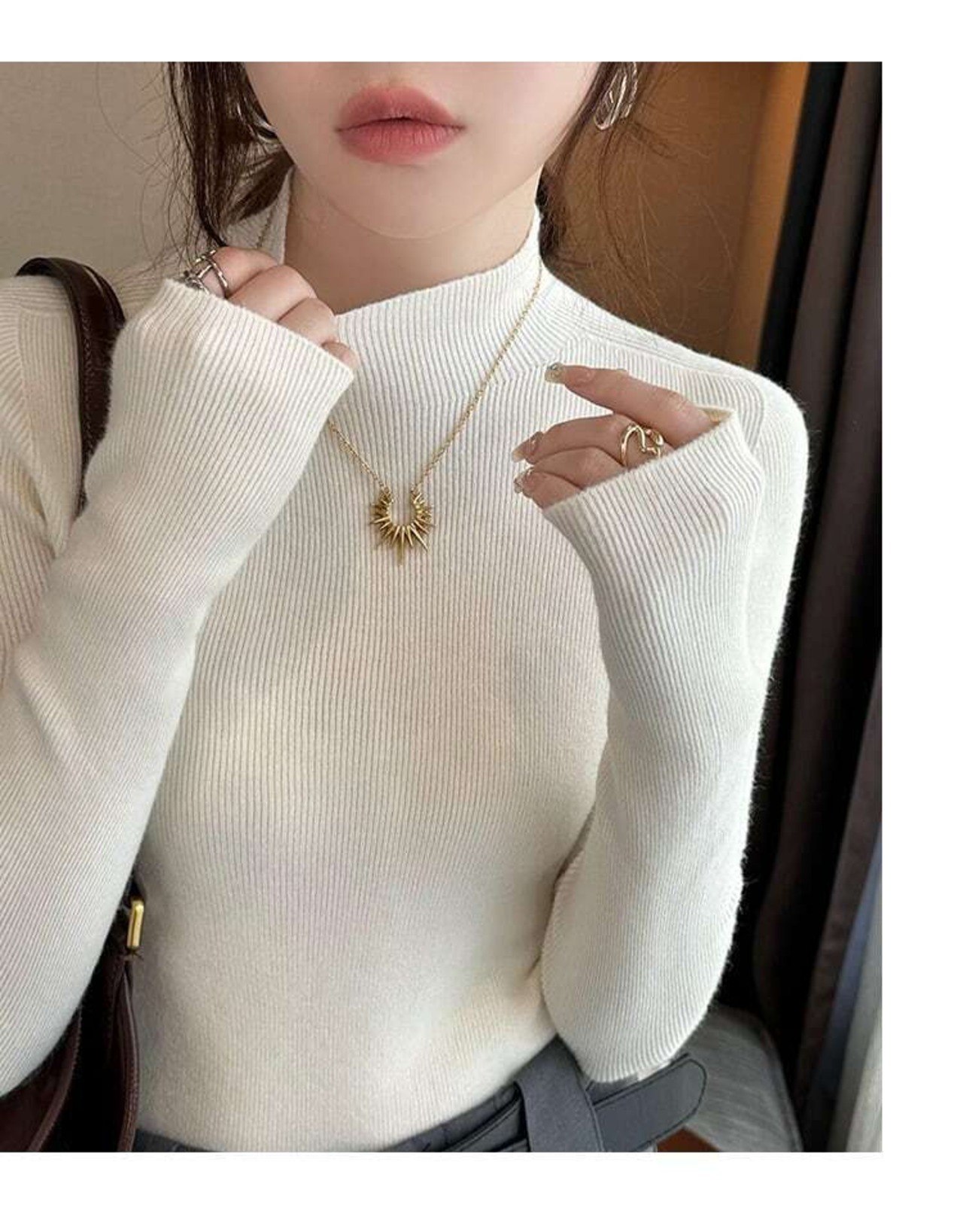 トップス ニット レディース 長袖 ハーフネック リブ 無地 シンプル 秋 冬 モード デート お出かけ MH4218