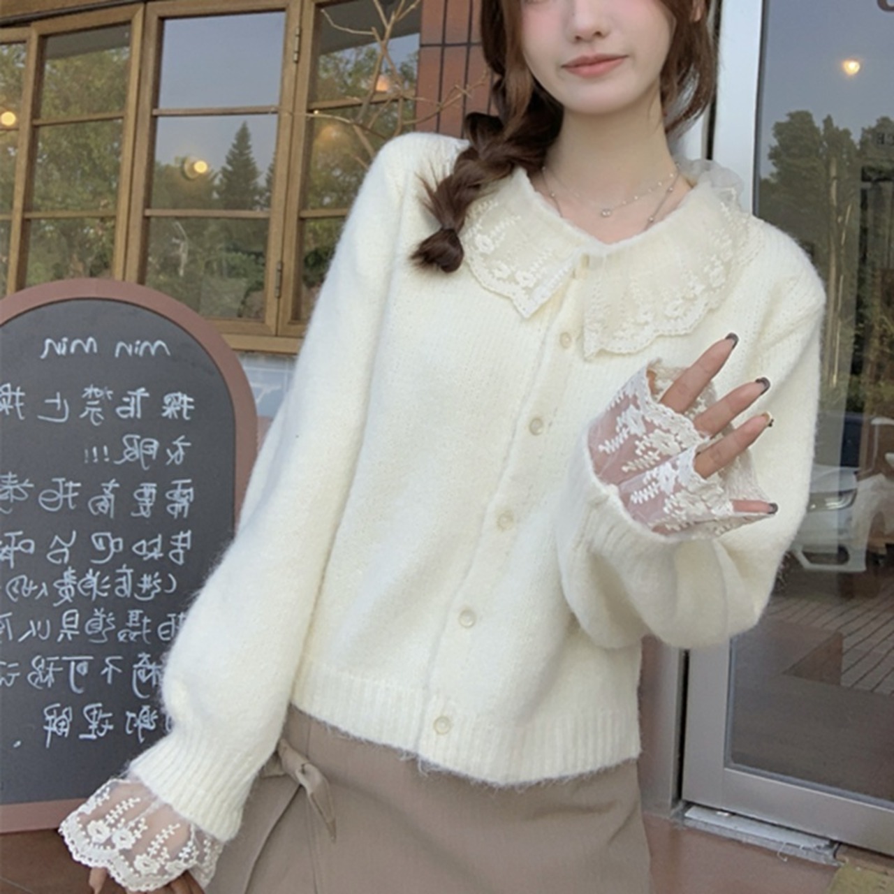 トップス レディース セーター 長袖 ラウンドネック レース 秋 冬 パステルカラー ガーリー フェミニン デート お出かけ MH4243