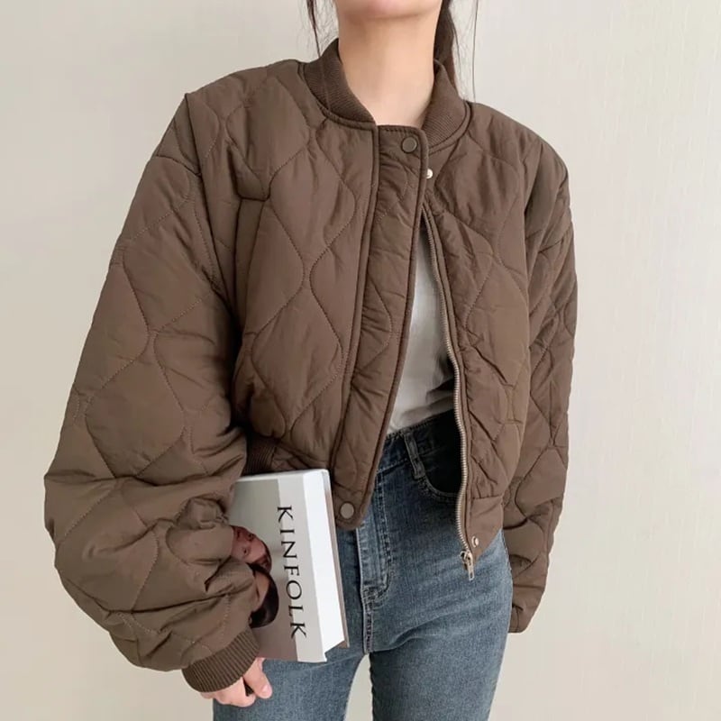 ブルゾン レディース アウター ショート丈 ノーカラー キルティング コンパクト すっきり スタイリッシュ 秋 冬 カジュアル おしゃれ MH4315