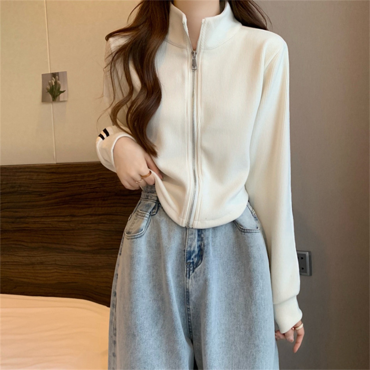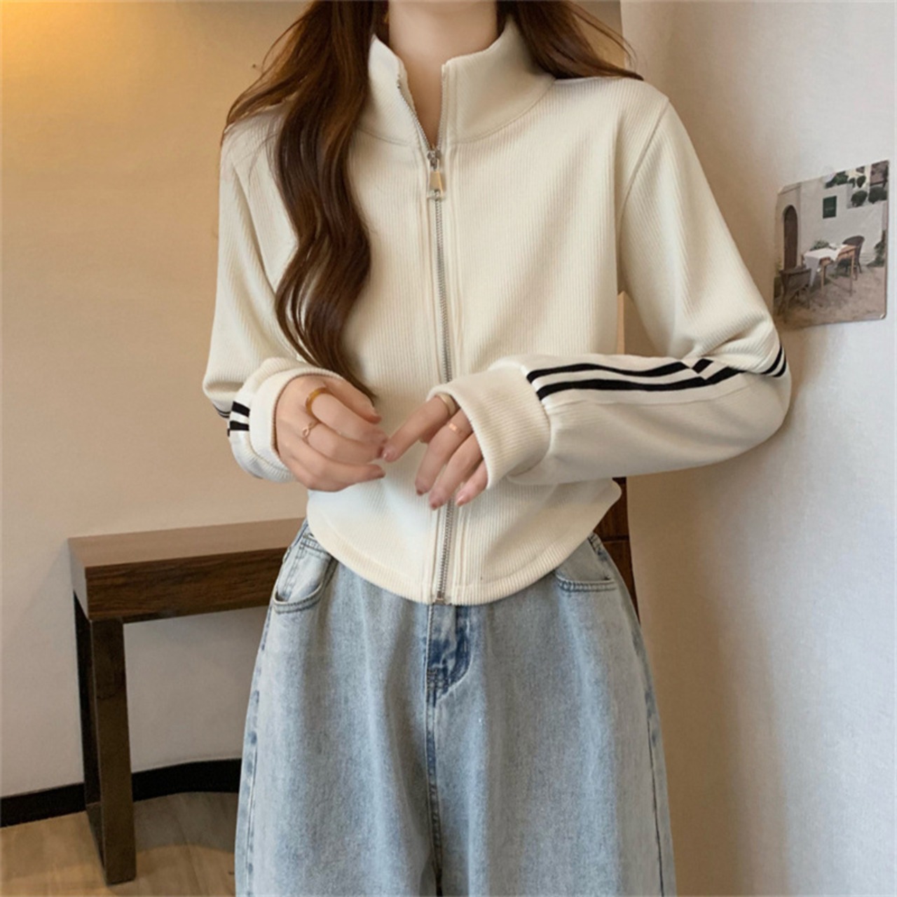 トップス レディース ハイネック ライン入り スリム ジップ ショート丈 スタンド ネック 羽織 ジャージ カジュアル MH4323