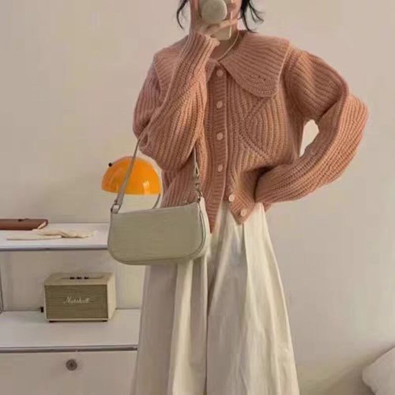 トップス レディース ビックカラー カーディガン 長袖 ニット セーター 羽織 ガーリー フェミニン おしゃれ ゆったり 多用途 韓国 MH4401